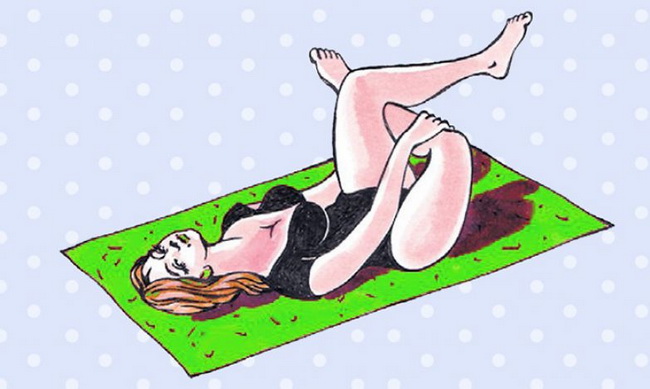 Osetite se ponovo u maminom stomaku – lezite u pozu embriona. Samo lezite na leđa, savijte noge i privucite ih do stomaka, obuhvativši ih rukama.