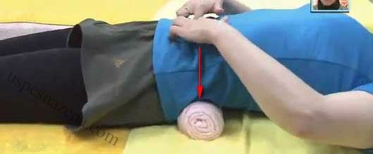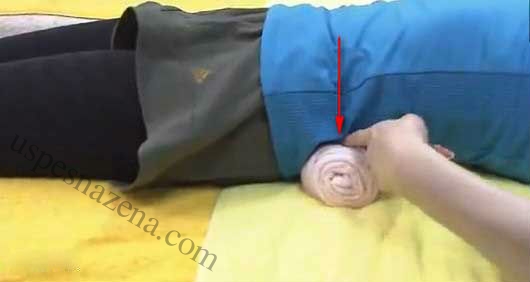4. Proverite, napravite kažiprstima sa obe strane liniju od pupka do peškira. Savijeni peškir mora biti malo širi od širine leđa
